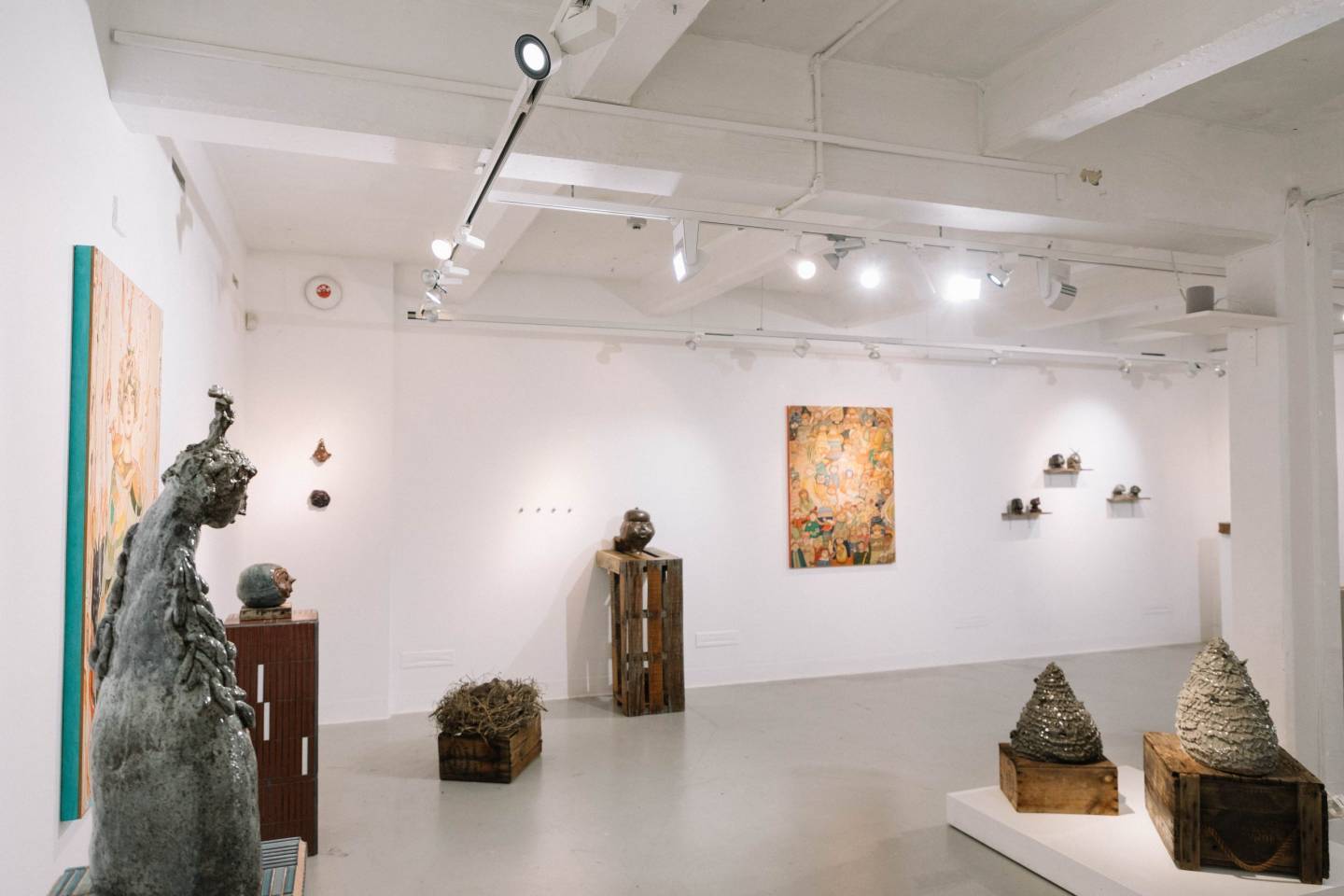 Hand-sculpted chestnut baby in found material nest, seeking to be a representation of the artist's journey of migration. The chestnut is a culturally significant plant/ food and is considered an 'exotic export' of Hungary.