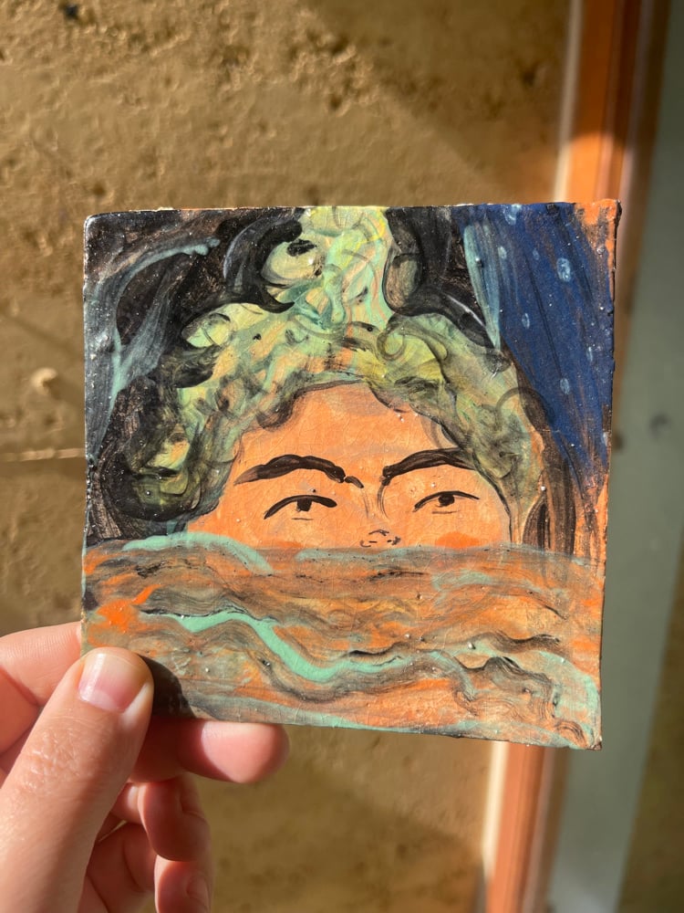 Water Lady is treading water as night is falling, but she does not lean into despair. She knows that life comes in waves and this is another one to ride through, and morning will break in time. This tile is a great reminder to keep on keeping' on. Send it to someone who needs a little loving reminder that no feeling lasts forever.