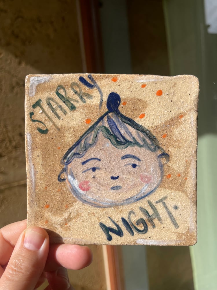 This tile is inspired by the 1971 song 'Starry Night' by Don McLean, that I first heard when I was in high-school, and the lyrics and melody have stayed with me ever since. "Starry, starry night Paint your palette blue and gray Look out on a summer's day With eyes that know the darkness in my soul".
